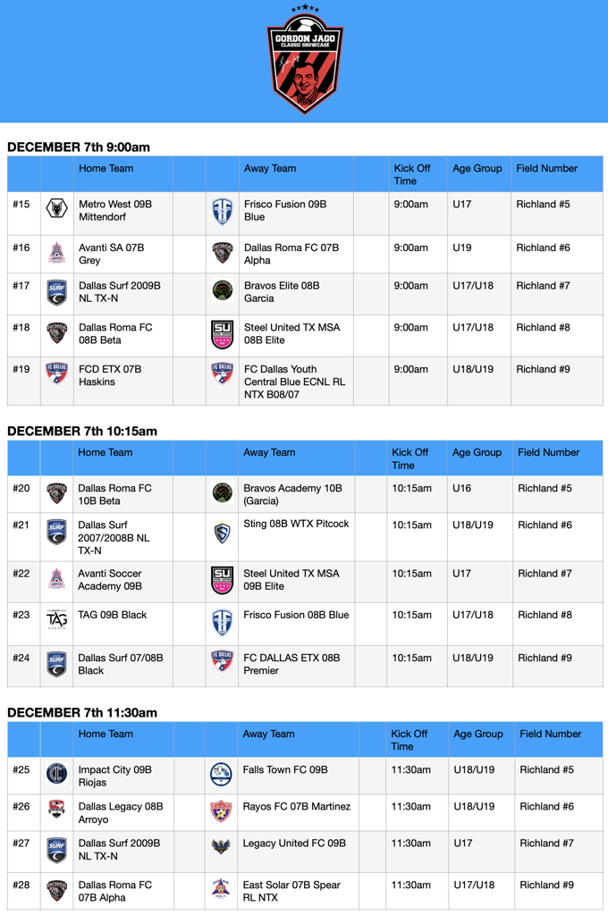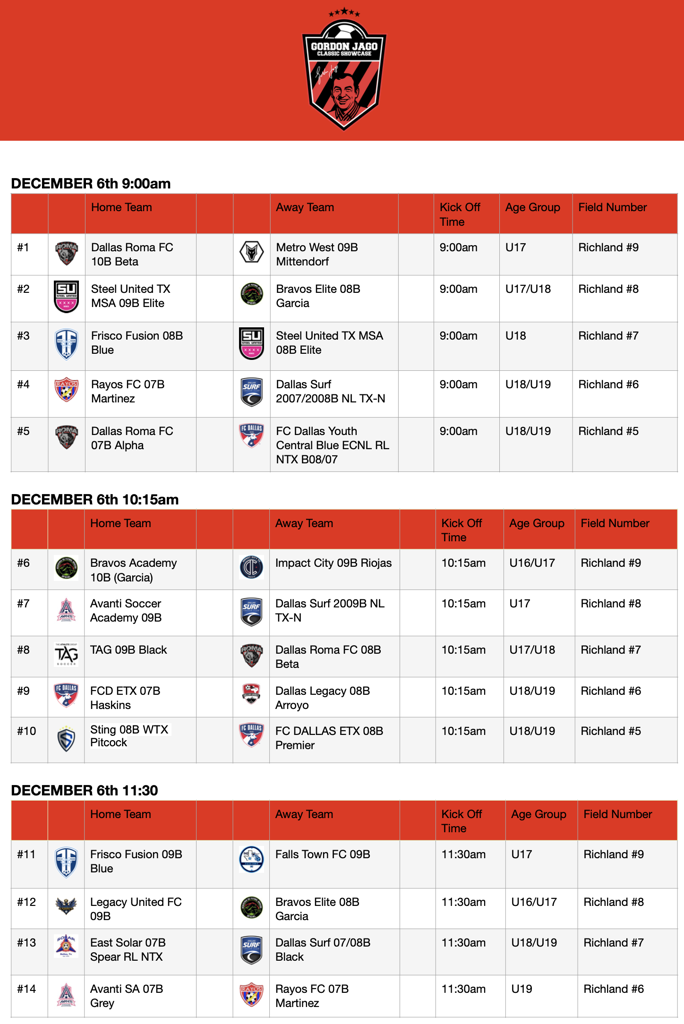 Gorgon Jago Classic Showcase Schedule